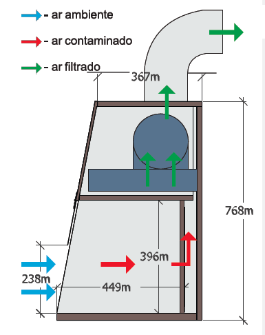 3. Filtro de Carvão Ativado: Adequado quando há a necessidade de atenuação de odores diversos (orgânicos ou inorgânicos). Umidade relativa máxima: 70%. Vazão: 1000m3/h; Temperatura máxima: 50°C.