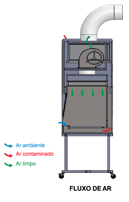 Manômetro: utilizado para medir a pressão diferencial exercida no filtro. O equipamento é validado para utilização durante seis meses. Quando for atingido esse tempo será emitido um alarme de três beeps. Essa característica é garantida devida à utilização do manômetro diferencial.