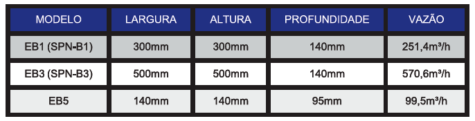 EB5: Exaustor centrífugo mural, alta pressão, ideal para dutos longos 0100mm, com sistema de persianas anti retorno.
