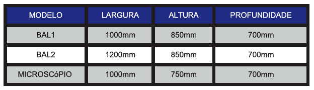 MESASHumberto2023-01-30T17:39:49-03:00 BAL 1 -MESA DE BALANÇA 1 BAL2 -MESA DE BALANÇA2 MESA ANTI-VIBRATÓRIA PARA MICROSCÓPIO DETALHES GERAIS Estrutura: base do núcleo, laterais e saia preenchidas com brita O. Sapata anti-vibratória com regulagem de altura.BAL 1/Microscópio: tampo em MDF RU com um (01) sistema anti-vibratório com granito polido natural. BAL2: tampo em MDF RU com dois (02) sistemas anti-vibratório com granito polido natural.